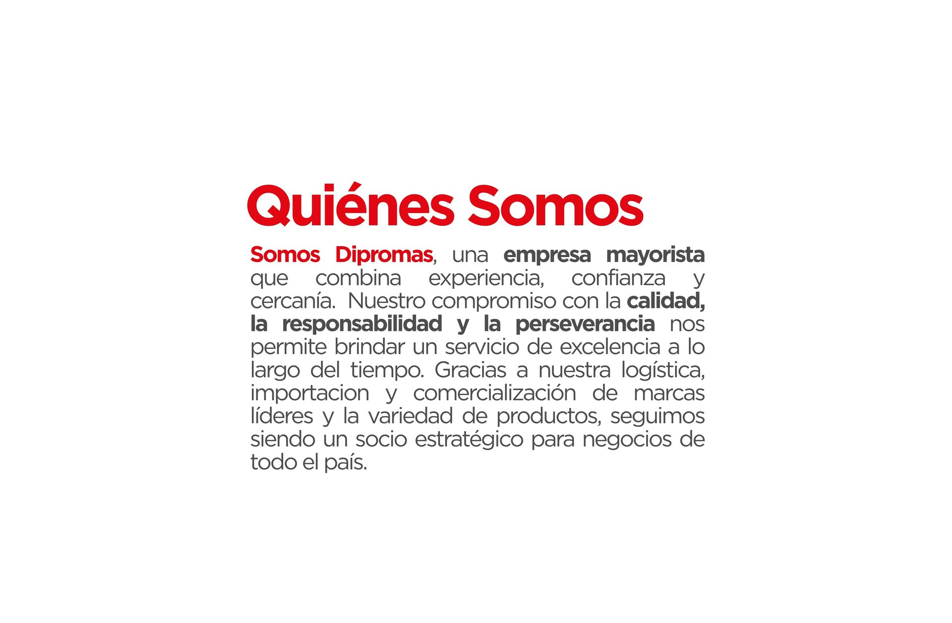 Somos Dipromas, una empresa mayorista que combina experiencia, confianza y cercanía. Nuestro compromiso con la calidad, la responsabilidad y la perseverancia nos permite brindar un servicio de excelencia a lo largo del tiempo. Gracias a nuestra logística, importacion y comercialización de marcas líderes y la variedad de productos, seguimos siendo un socio estratégico para negocios de todo el país.